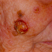 Carcinoma escamoso cutâneo invasivo - a aparência clínica geralmente se correlaciona com o nível de diferenciação do tumor. As lesões bem diferenciadas geralmente aparecem como pápulas, placas ou nódulos endurecidos ou firmes, hiperqueratóticos. As lesões geralmente têm 0,5 a 1,5 cm de diâmetro, mas podem ser muito maiores. A ulceração pode ou não estar presente. Em contraste, as lesões pouco diferenciadas são geralmente pápulas ou nódulos granulomatosos, semelhantes a granulomas piogênicos, sem a hiperqueratose que costuma ser observada em lesões bem diferenciadas. Tumores pouco diferenciados podem apresentar ulceração, hemorragia ou áreas de necrose.